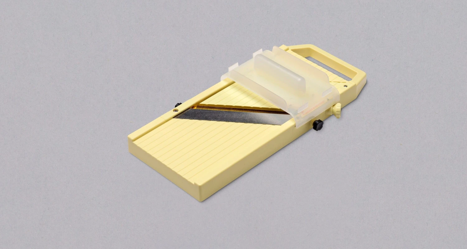 Thickness can be easily adjusted up to 3 mm. Non-skid base and finger guard ensure safe slicing. Mandoline comes apart for easy cleaning.