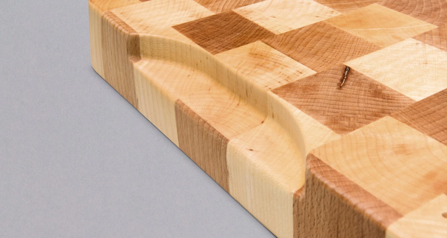These end grain cutting boards (or butcher’s block) are made for us by the local Slovenian woodworker, J. Gros. The cutting board is made of maple and beech wood. End grain pieces of wood are assembled in the classic checkerboard pattern, a distinctive feature of end grain cutting boards. It is completely hand-made, each cutting board has a slightly different pattern. With the working surface of 40x30cm (15.8″ x 11.8″) it is just the right size to fit onto any countertop, either at home or in a professional kitchen. This cutting board is additionally impregnated with natural mineral oil that can be safely used in contact with food.