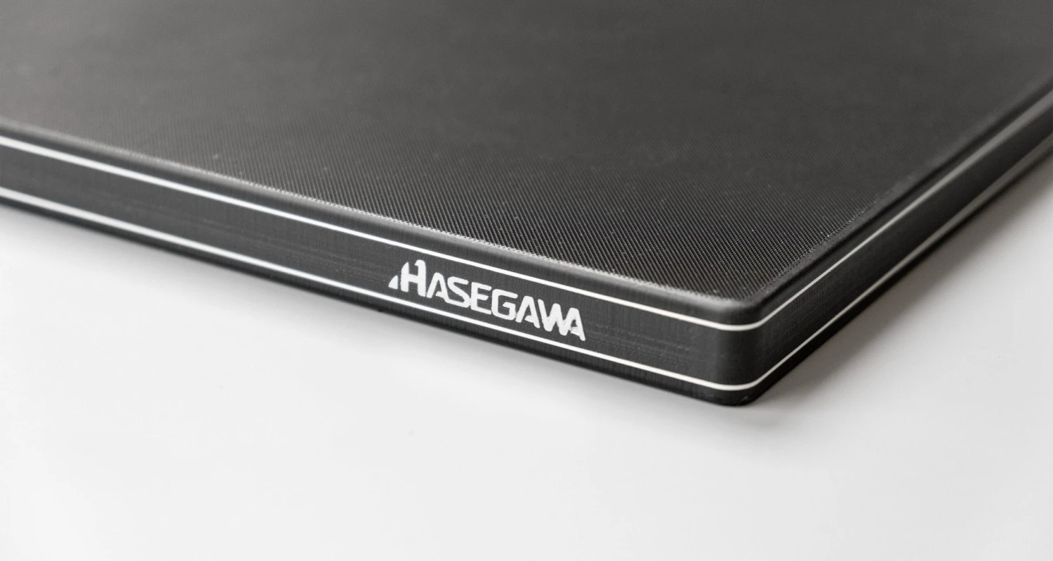 Harder plastic cutting boards usually don’t mix well with the harder steels that Japanese blades are forged from, and can sometimes cause them to chip. Even the higher-end plastic cutting boards typically fall short on two fronts. They are either too soft and therefore prone to bending, or they are made thicker for the same reason, and with that get significantly heftier. Hasegawa solves this issue with the addition of a wooden core that is then sandwiched between two layers of soft polyethylene plastic. The result is a lighter, easy-to-handle cutting board which is at the same time sturdier and won’t bend when weighed down heavily.