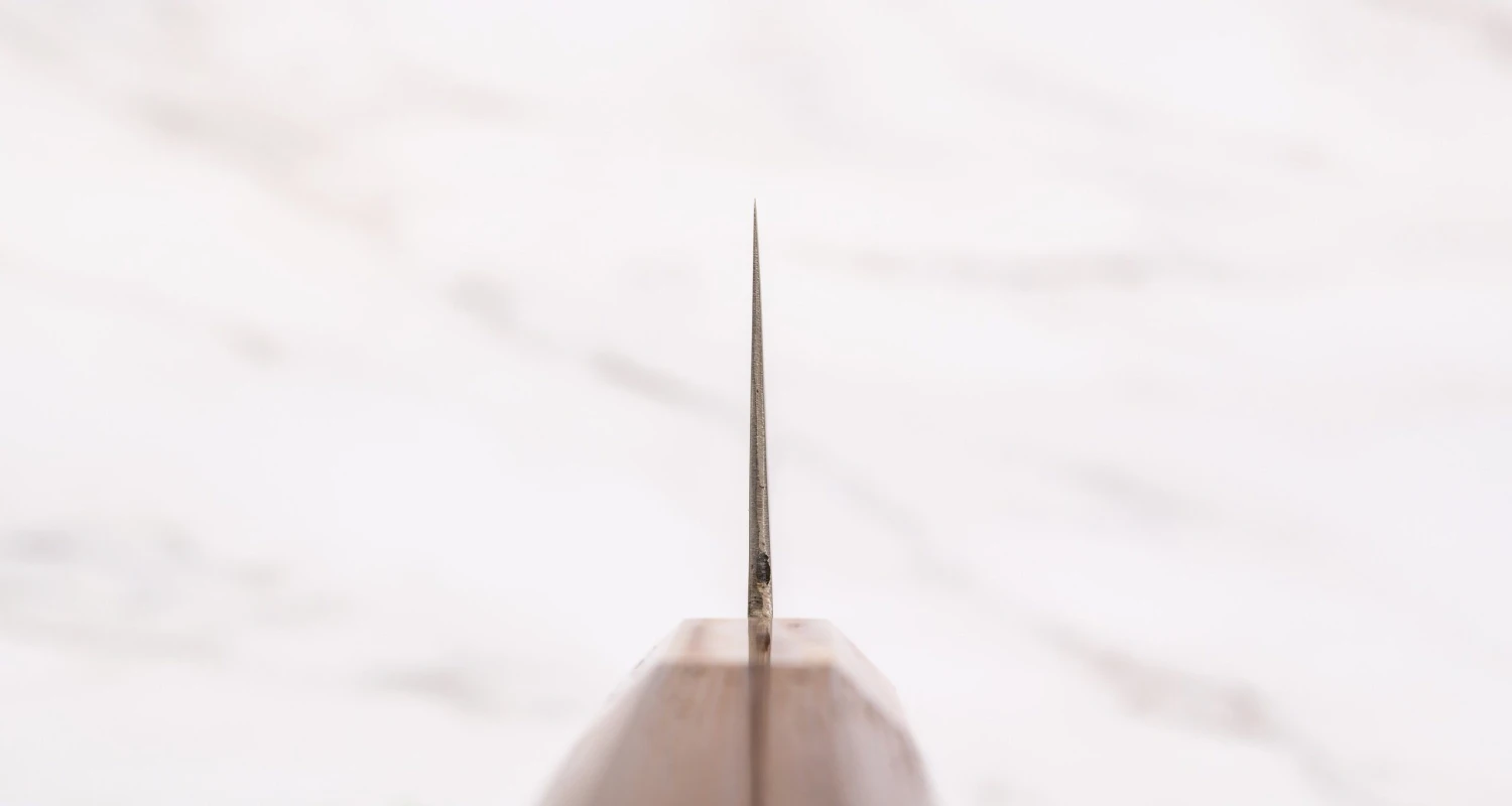 The minimalistic-looking, highly polished (also called migaki finish – see article Blade Construction: Blade Finish for more) blade is extremely thin, which allows the user to work precisely even with the smallest pieces of ingredients.