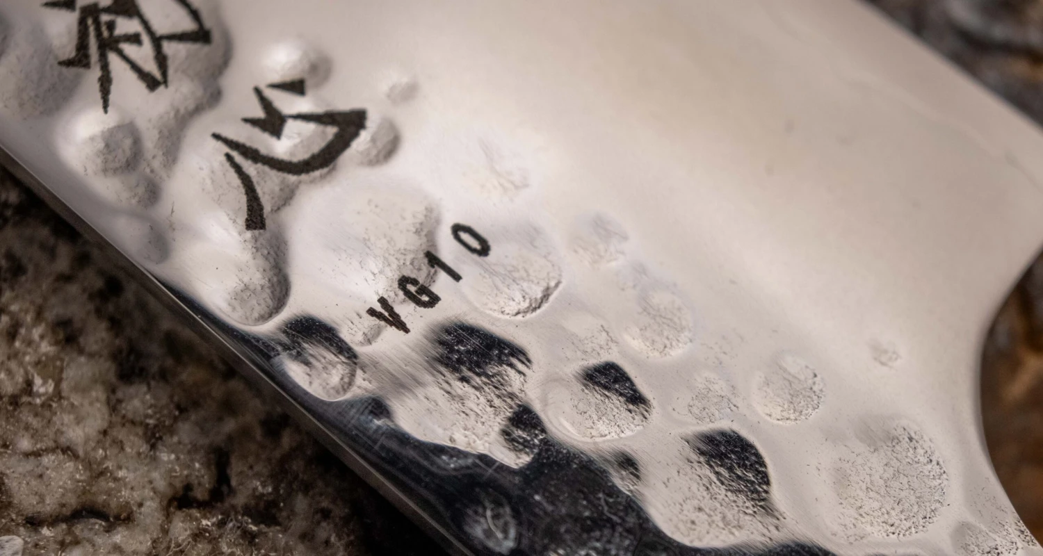 VG-10 (V for Vanadium, G for “gold” as in “gold standard”) is made by Takefu Special Steel Company, a relatively small steel company that around 60 years ago managed to find just the right balance of different elements to create the most popular Japanese knife making steel today.