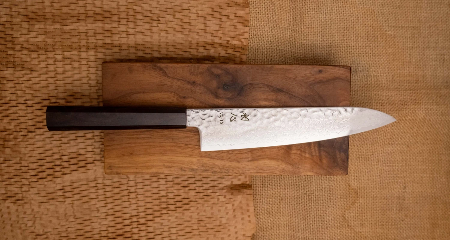 VG-10 (V for Vanadium, G for “gold” as in “gold standard”) is made by Takefu Special Steel Company, a relatively small steel company that around 60 years ago managed to find just the right balance of different elements to create the most popular Japanese knife making steel today.