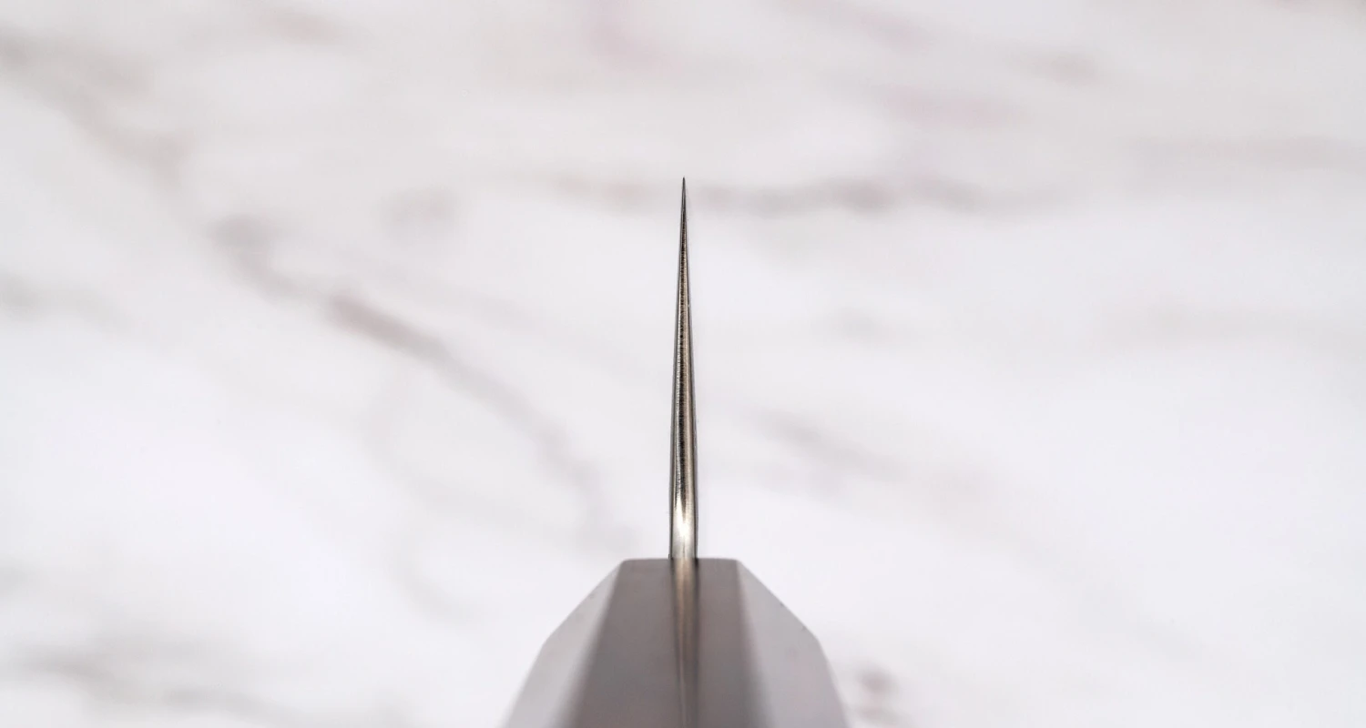 Gyuto is the most versatile and useful blade shape in the modern kitchen. It has a wide profile for easy food transfer and tends to be fairly flat towards the heel, enabling easy and fast chopping on the cutting board. A pointed tip allows piercing and precise, delicate work. A slight curve between the tip and the midsection makes the belly great for rocking the blade back and forth when cutting. It can be used for cutting meat, fish and vegetables.