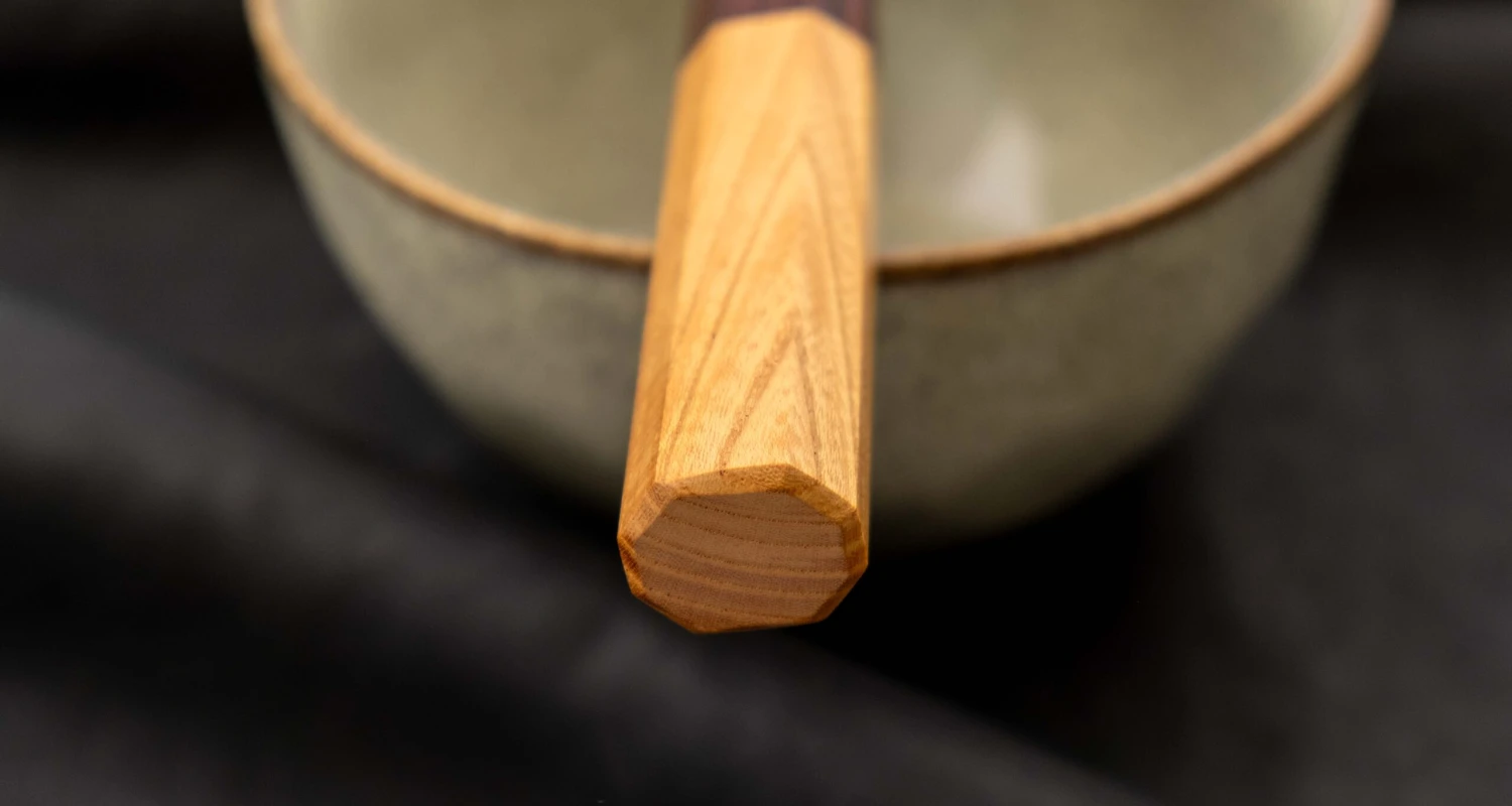 Fitted with a traditional Japanese handle of octagonal shape made of mahogany and zelkova wood, which are renowned for their strength and durability. The handle has a natural wooden feel and its minimalistic, traditional look will give any blade an added dimension of elegance without drawing too much attention from the blade. The handle is symmetrical, and suitable for both left- and right-handed users.