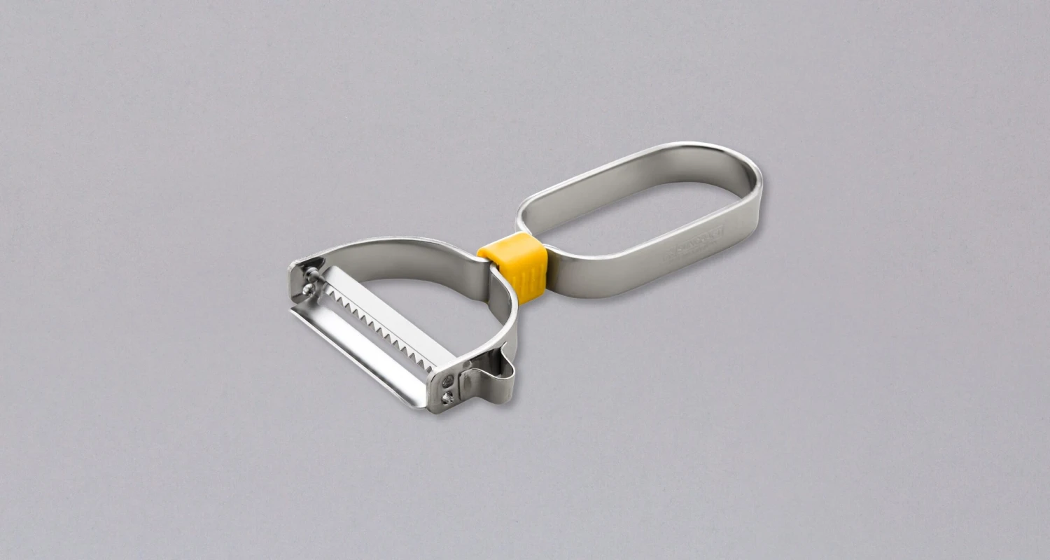 Made of very sharp, precise, and thin stainless steel by the Japanese manufacturer Suncraft this FC-111 peeler is a quick and safe tool for making thin julienne strips of vegetables – especially harder veggies like carrots, zucchini, potatoes, sweet potatoes, etc. Great for making garnishes, salad toppings, stir-fries, potato hash browns, citrus zest, and more.