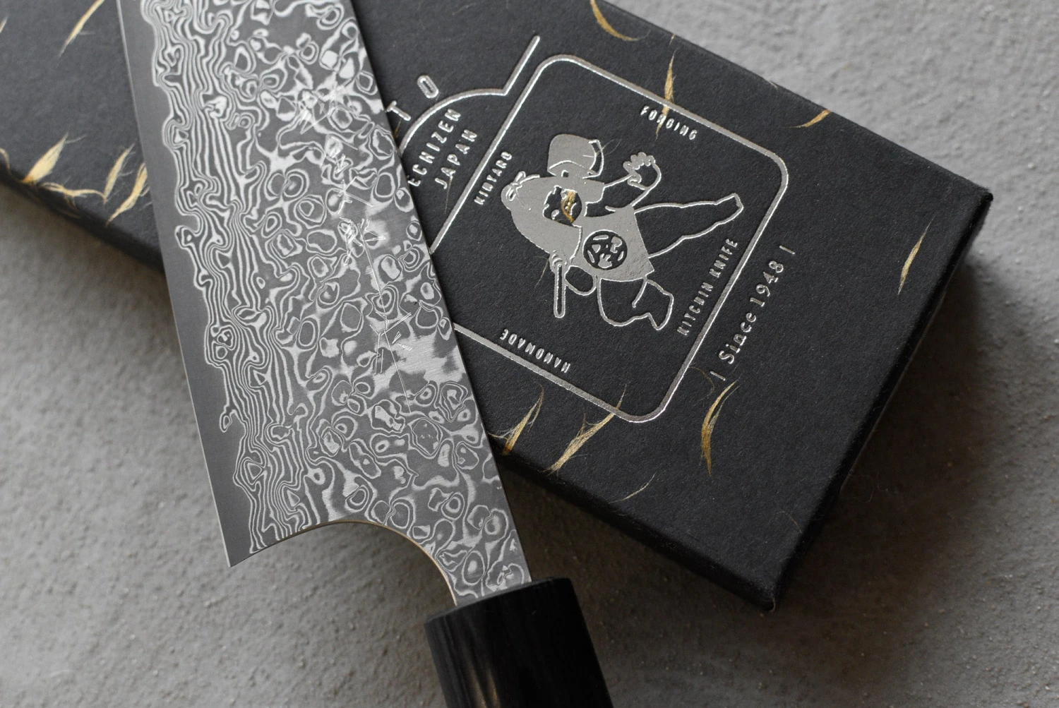 The traditional Japanese (Wa) handle is made of rosewood and due to its symmetric oval shape fits perfectly in the left as well as the right palm. The distribution of weight between the handle and the blade makes it extremely comfortable to work with and easy to handle.