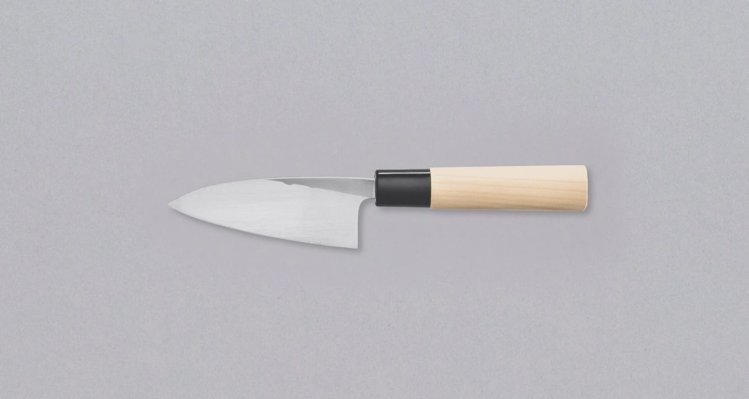 Ko-Deba Hammered Finish is a small, single bevel deba (right-handed users only!), primarily intended for filleting smaller fish, but it also performs well at smaller kitchen tasks, like mincing herbs or cleaning and preparing vegetables.