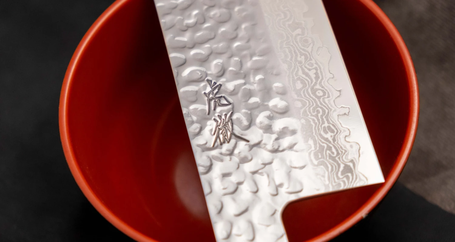 Hammer patterns are called tsuchime. Air is trapped in the air pockets during cutting, which helps the blade slide through the food without sticking, which enables fast and accurate food preparation.