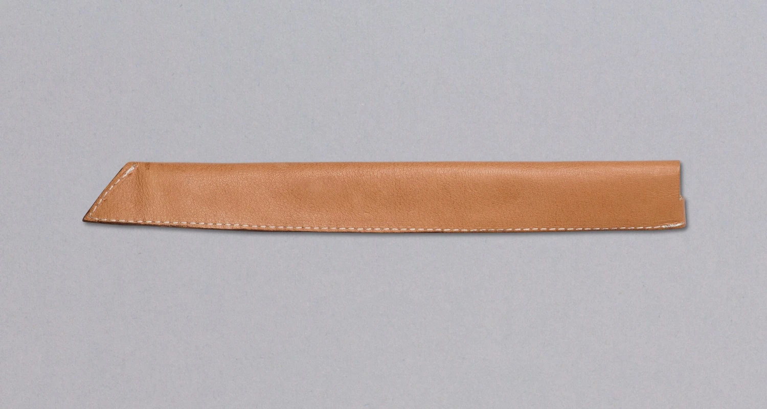 Our leather saya (knife sheath) was designed for our Burja – prosciutto knife, but can also be used for sujihiki/yanagiba knives of dimensions of up to 300mm (11.8″) in blade length and 30mm (1.2″) in blade width.