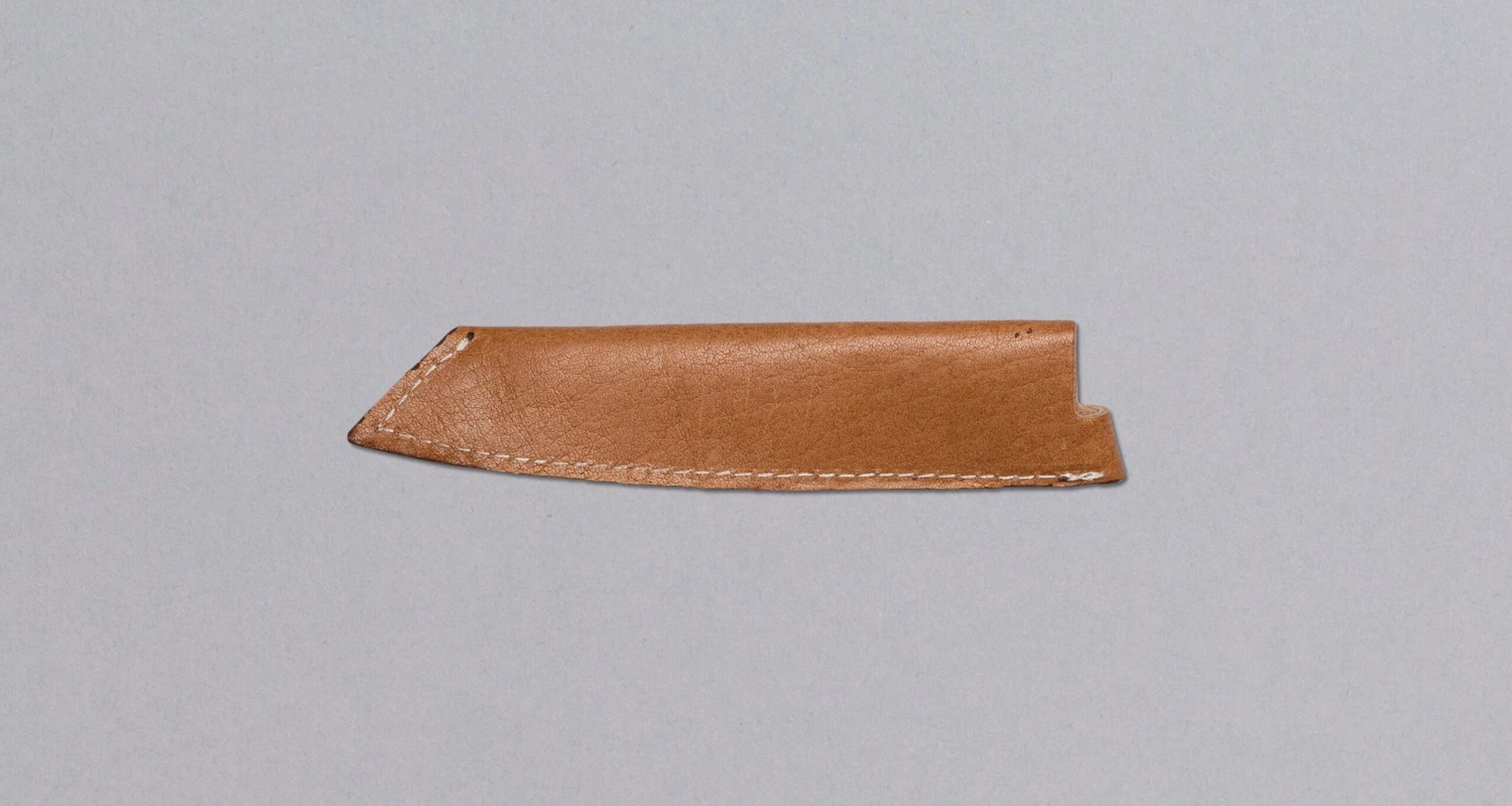 Our leather saya (knife sheath) is suitable for petty/utility knives of dimensions of up to 160mm (6.3″) in blade length and 35mm (1.4″) in blade width.