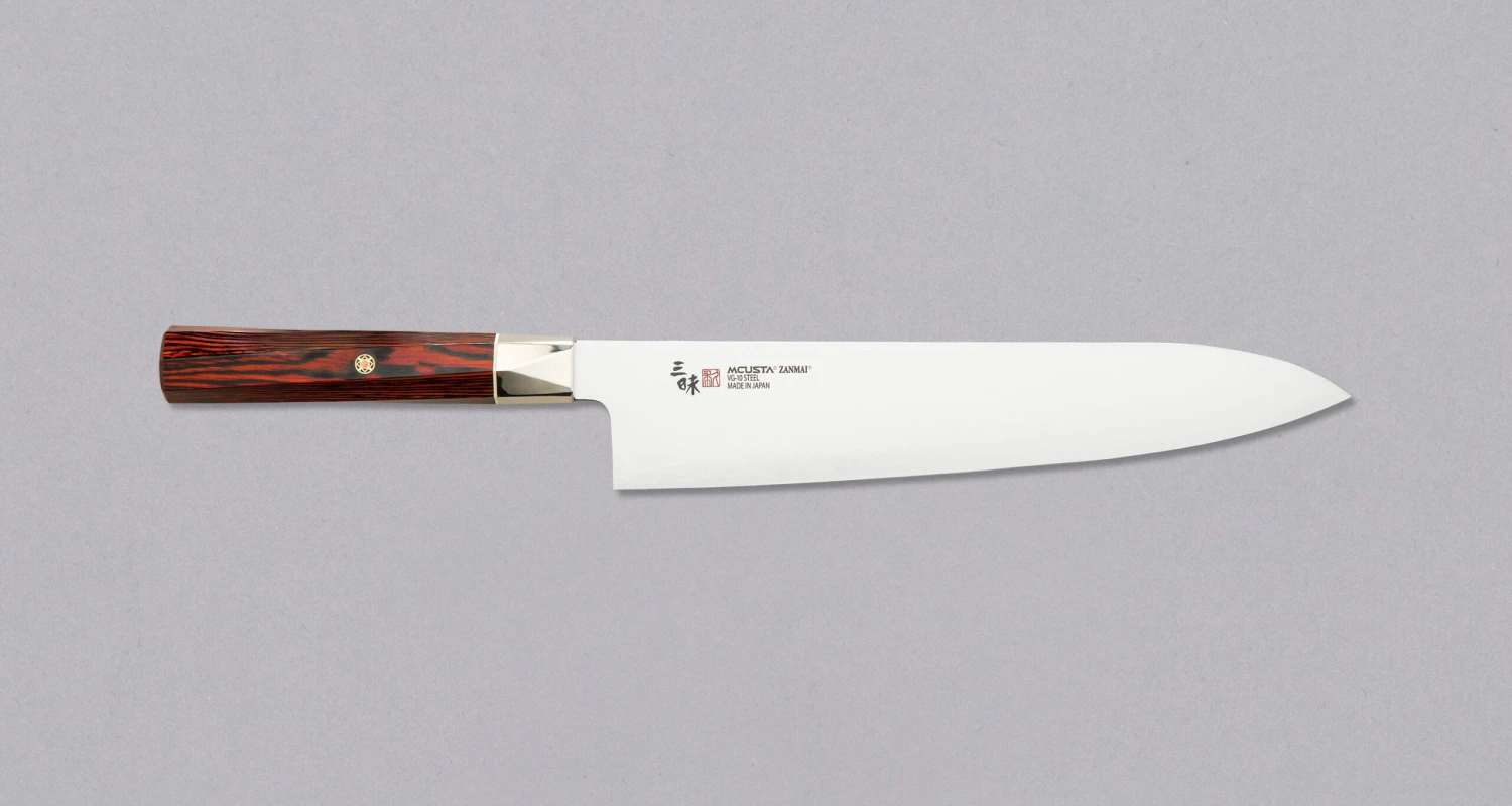 Mcusta Gyuto Supreme Twisted is a unique looking Chefâs knife. Gyuto blade shape is the Japanese version of the chefâs knife, so this knife will fit well into the hands of both the professional chef or the passionate home cook. With its thin blade, typical for all Mcusta knives, it will slice through your veggies, meat, and fish with ease and almost without any applied pressure to the knife.
