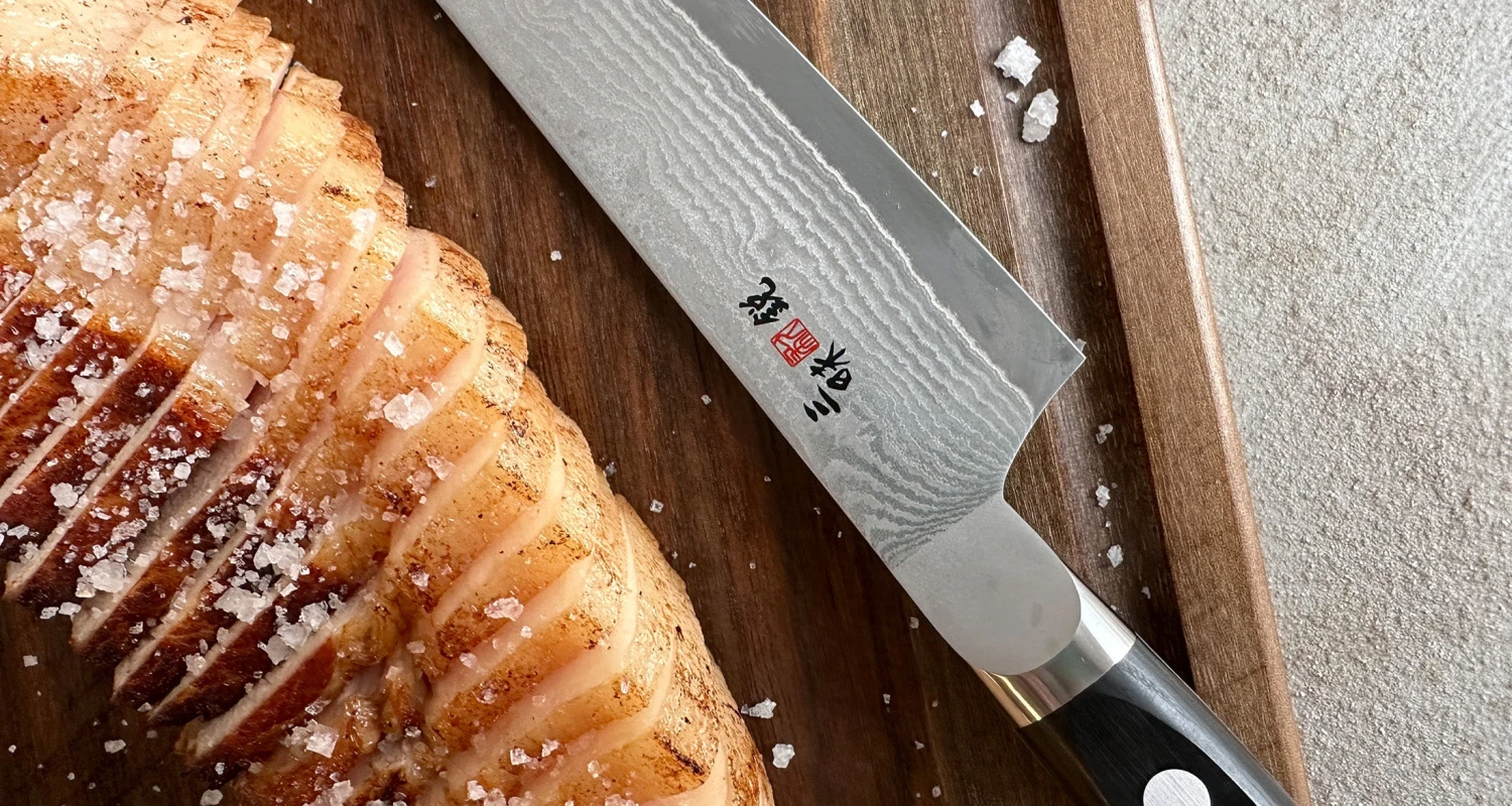 With its thin blade, typical for all Mcusta knives, this knife will slice through your veggies, meat, and fish with ease and with almost zero applied pressure to the knife.