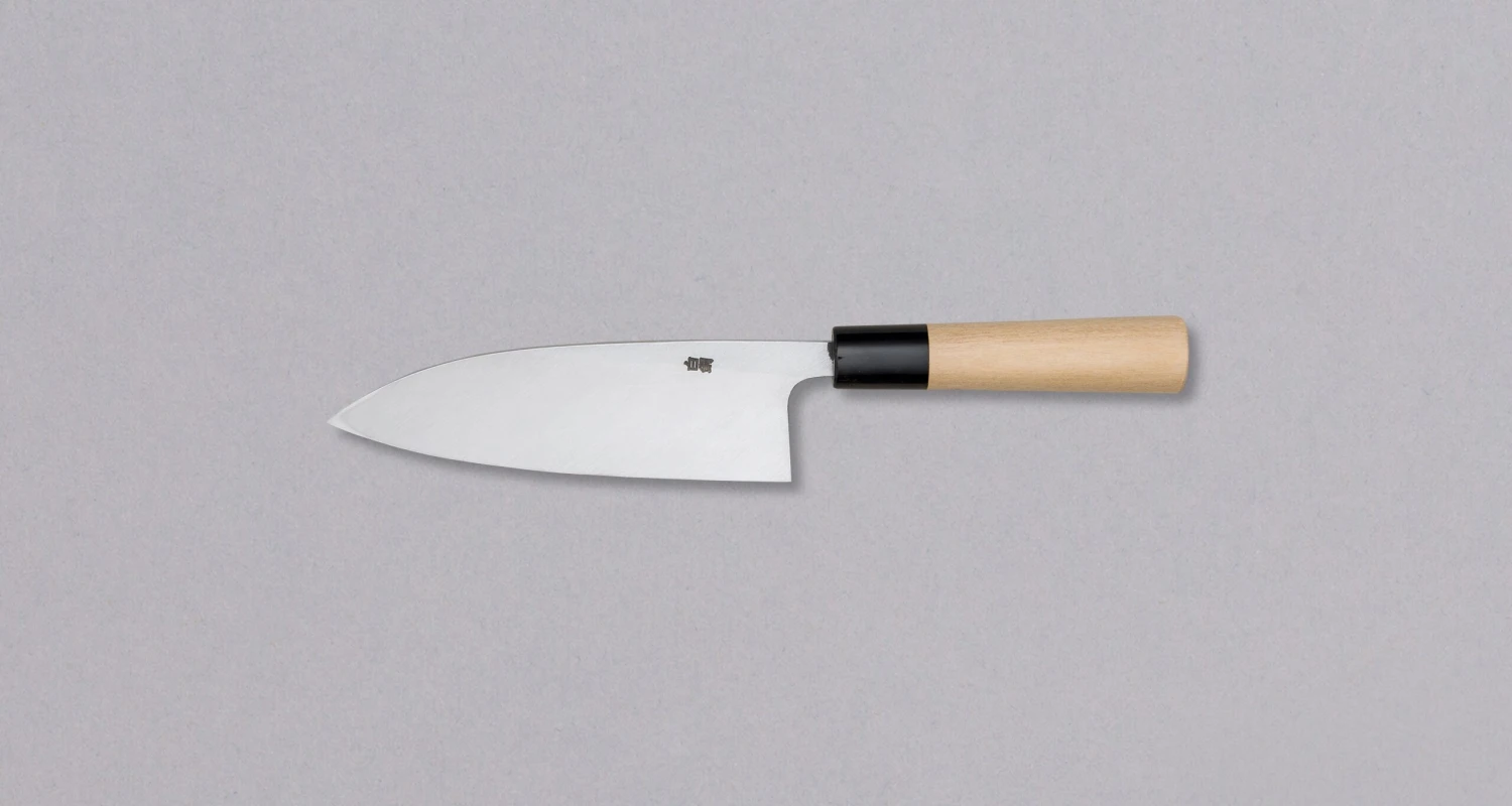 Miki Deba Shirogami in 165mm (6.5″) blade length is a heavy traditional Japanese knife for rougher tasks, intended for filleting fish and poultry. A proud member of the traditional Japanese trio (along with yanagiba and usuba knives). It is a medium-sized deba designed for fish lovers and professional chefs. The blade thickness is at hefty 8mm (0.31″), the blade length is 165mm (6.5″), so it is suitable for filleting medium-sized fish. Deba also performs well at smaller kitchen tasks, like mincing herbs or cleaning and preparing vegetables. The single bevel blade is suitable 🚨 for right-handed users only!