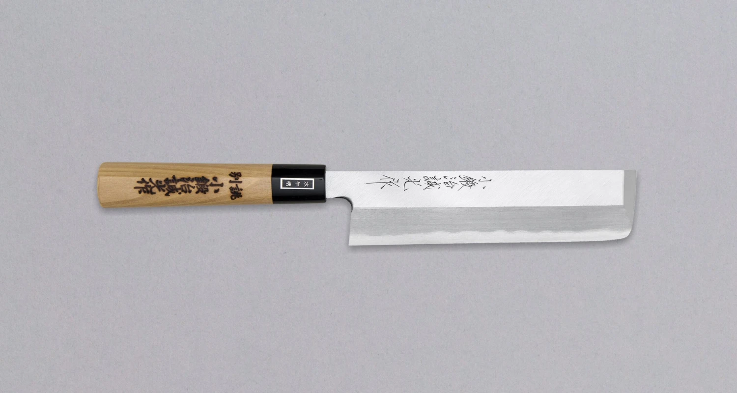 Miki Hamono is a small-scale blacksmith from the Miki area in Japan. Miki is a very famous blacksmithing area located in Hyogo prefecture in the center of Japan. They use an old Japanese forging technique that originated from making samurai swords (katanas). Miki Hamono is mostly known among Japanese sushi chefs for forging traditional single bevel shirogami (white) steel knives. Their knives are the perfect example of the Japanese traditional knives where every part of the knife is made the »right way«, like in the old days, but separates them from other similar blacksmiths by a very good price performance.