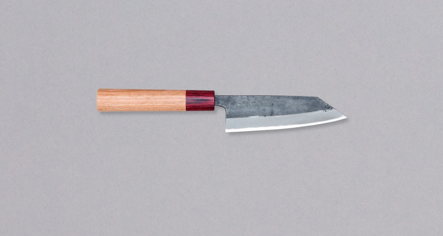 Muneishi smithy was founded in 1955. Hirotaka Muneishi, the second-generation knife smith, is renowned for manufacturing forestry knives such as axes and machetes for the local woodsmen. Kosuke Muneishi, the third-generation blacksmith and now the head of the company, has since branched out to making kitchen knives. He mostly uses Aogami Super steel and performs all the steps himself: tempering, forging, hammering and sharpening knives. His knives have very nice grinds, good profile, and are very affordable.