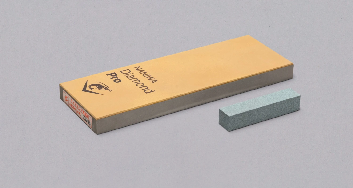 Each Naniwa Diamond Pro stone comes with an additional dressing stone for keeping the diamond layer clean and functional. The dressing stone should also be soaked before use.