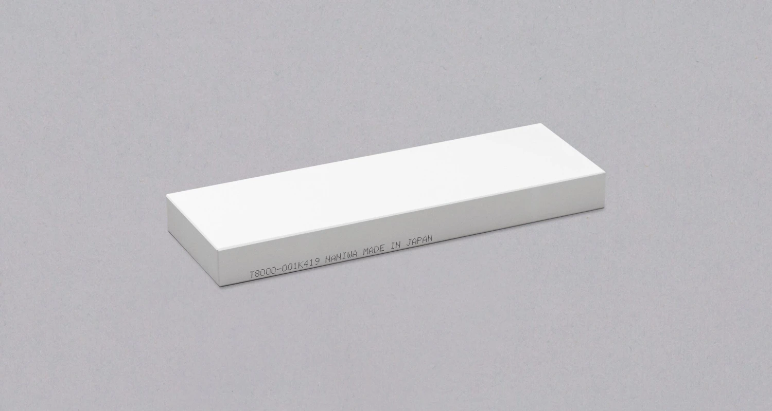 Sharpening stone #8000 is suitable for Japanese and German kitchen knives, razors and carpentry tools. We use it for fine sharpening and removing the burr after sharpening, and to polish the blade. It will leave a very smooth, fine edge which works best with meat/fish knives like gyuto, yanagiba, deba, sujihiki.