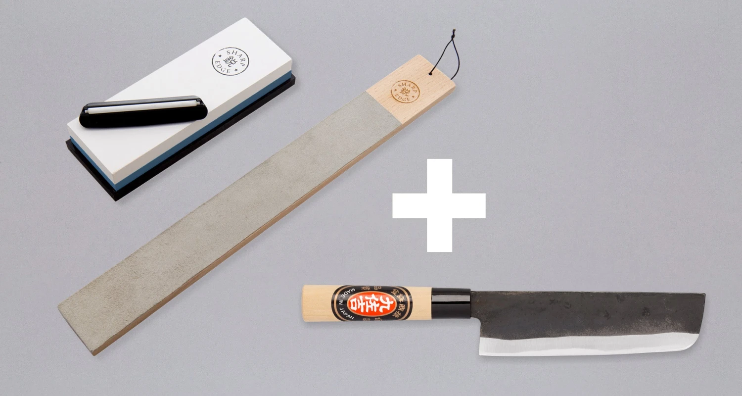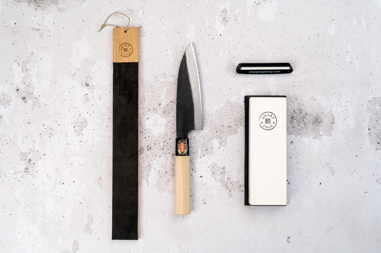 The set includes everything you need to keep all your knives, whether Japanese or not, in good shape on a budget.