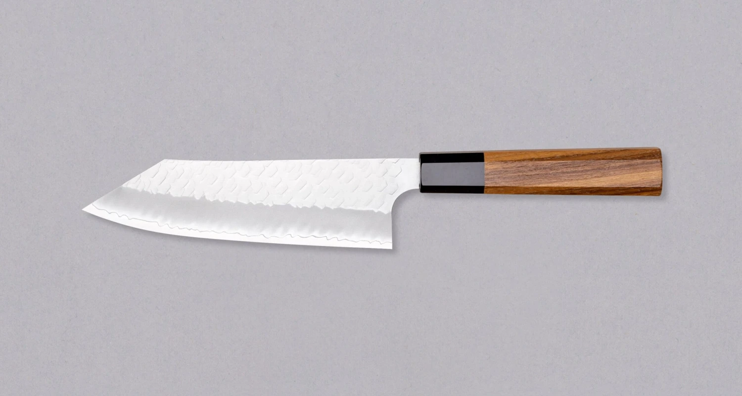 The tsuchime surface helps to reduce friction and prevents food from sticking to the blade during cutting. The textured surface creates small air pockets which allow for smoother and more precise cutting.