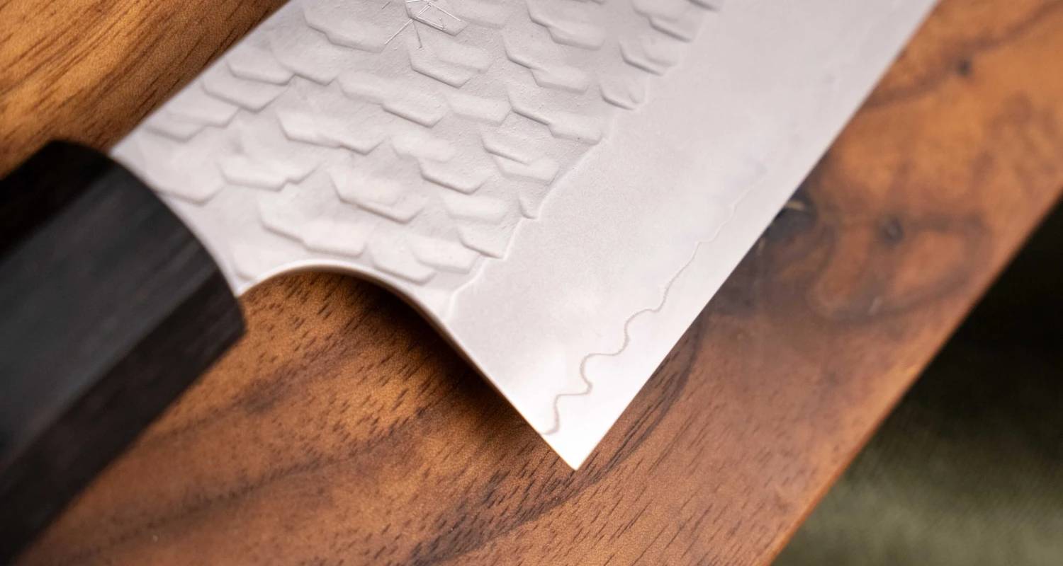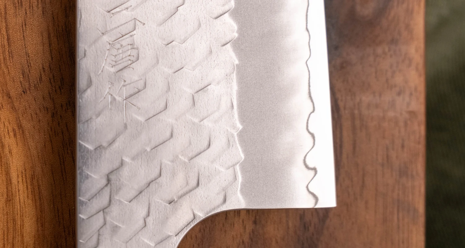 The tsuchime surface helps to reduce friction and prevents food from sticking to the blade during cutting. The textured surface creates small air pockets which allow for smoother and more precise cutting.