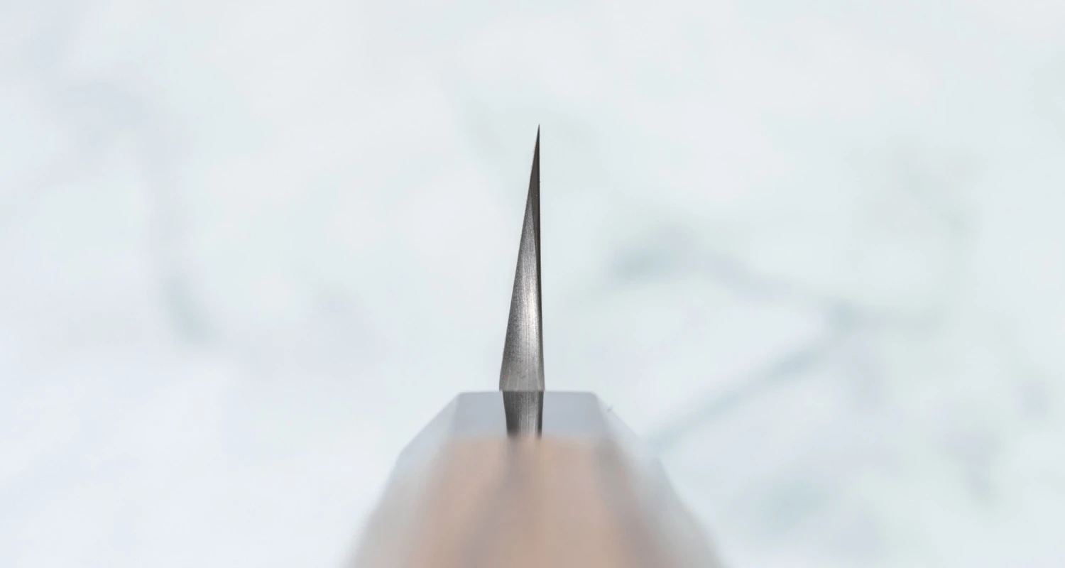 It has a single bevel (asymmetrical) blade and has a chisel bevel grind As such, the blade and handle are not suited for left-handed people but right-handed users only. The profile of the blade is superb with a deep ground urasuki and a very fine secondary angle. The profile of the blade and the gradual tapering of it are crafted to perfection. Single bevel blades make extremely precise cuts and are easy to resharpen.
