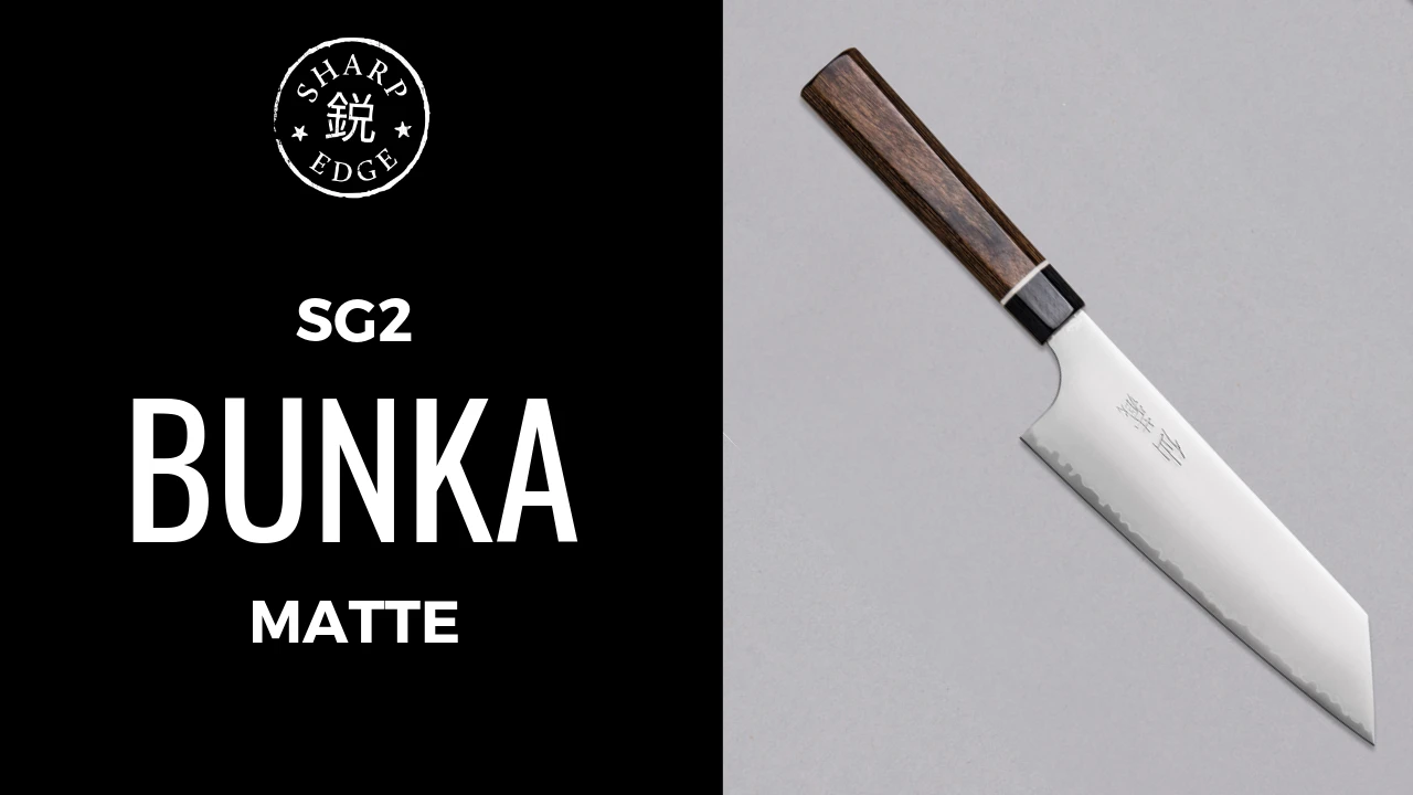 SG2 Bunka Matte is our third multi-purpose Japanese kitchen knife we designed. It embodies all of our knowledge and years of experience presenting Japanese kitchen knives to knife lovers around the world. She already has a special place in our kitchen (and in our hearts 😍), just next to her bigger sister ZDP-189 Bunka Black, and we hope it will soon find a special place in your kitchen too.