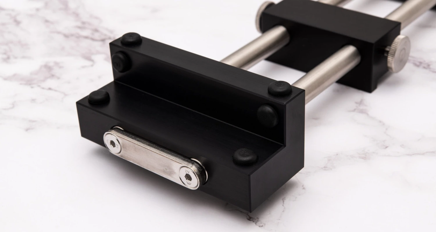 Attach one jaw, place the stone on the stand, and then use the other jaw to squeeze and secure the stone. After finishing sharpening on one stone, the adjustable sliding jaws allow a quick and easy transition to a stone of different grit, regardless of the difference in stone size. You can easily change stones of different sizes and manufacturers during the grinding process.