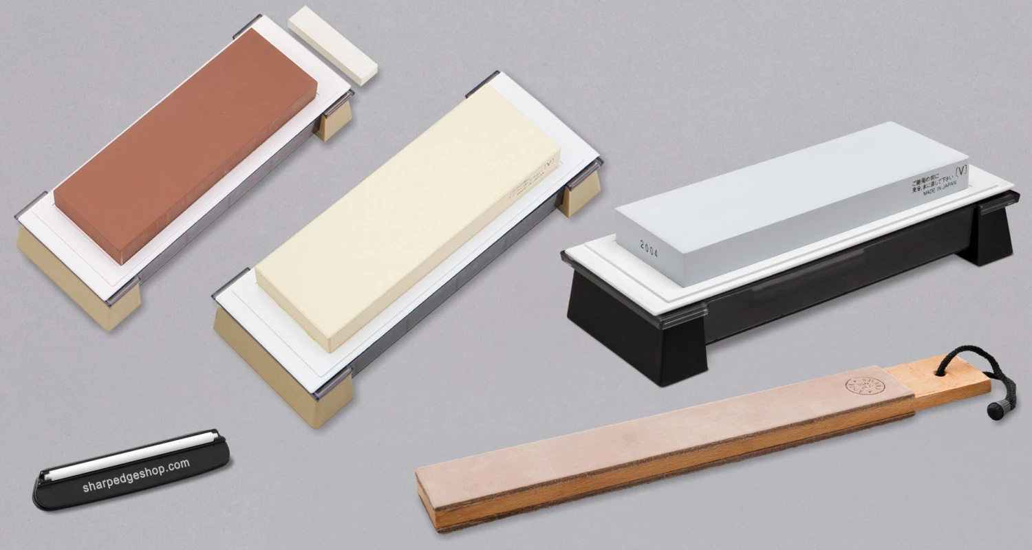 Suehiro “Advanced” Sharpening Set includes 3 single-sided sharpening stones from Japanese manufacturer Suehiro. Suehiro Cerax stones are quality Japanese sharpening stones with a great price/performance ratio. We highly recommend them, we often use them to sharpen our customers’ knives.