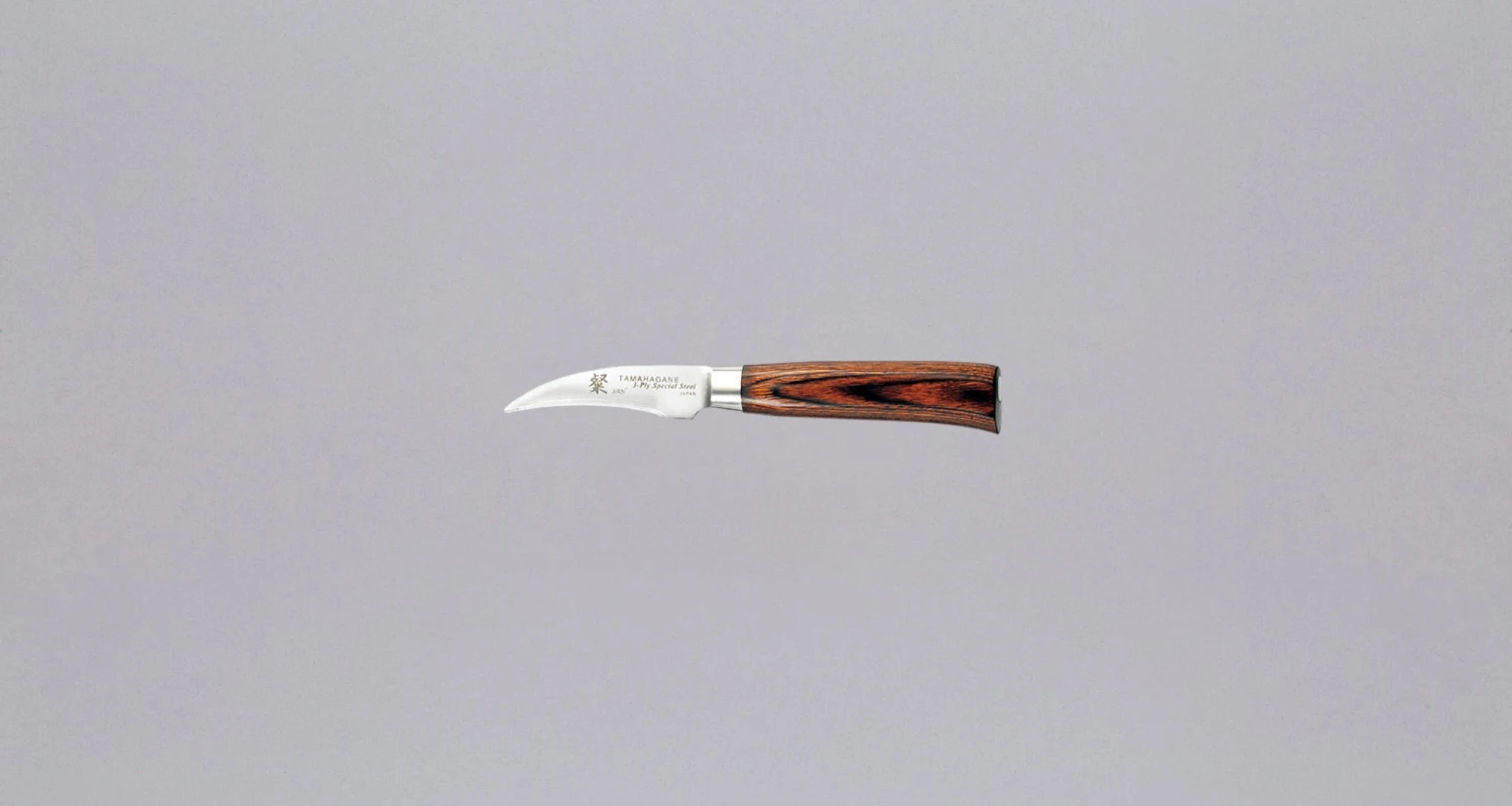 Tamahagane’s  Bird’s Beak Paring knife is mostly used in a professional kitchen for peeling or carving fruits and vegetables and is especially essential to tourne vegetables (a French staple technique). It will come in handy in a home kitchen too, especially with peeling spherical fruits and veggies, although the standard shaped paring/petty knife should also do the trick.