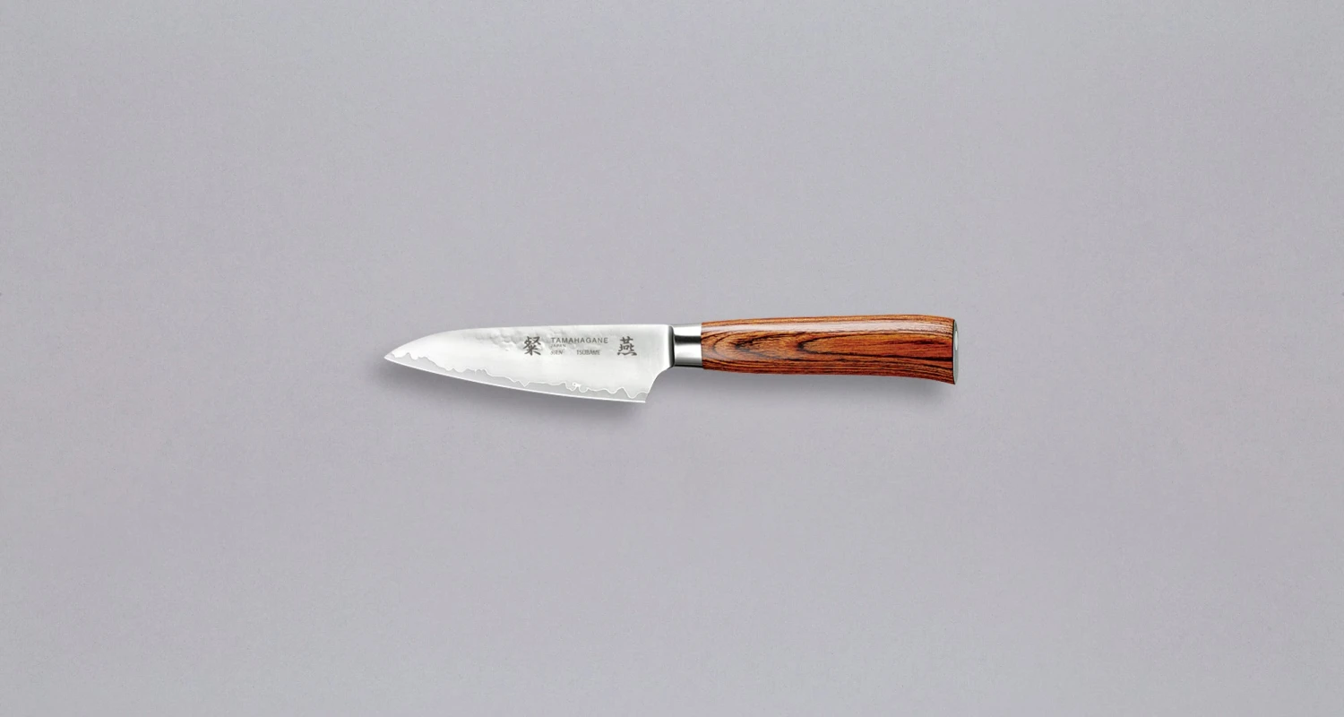 Tamahagane Paring knife is perfect for all those delicate tasks where a larger knife is deemed unwieldy. Paring knives are mostly used for in-hand cutting for peeling, paring and decorating, trimming meat, coring apples, cutting out potato eyes and similar tasks. It is a type of knife you should absolutely consider adding to your collection if you cook a lot.
