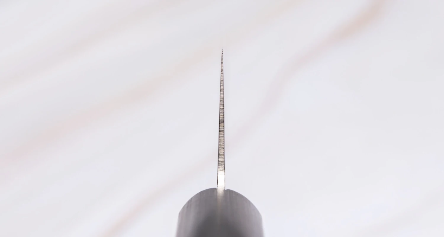 Designed for cutting vegetables, the Nakiri shape is perfect for long or short cuts, while the thin tip allows for precise work. The Nakiri aka Nakiri Bocho is a traditional Japanese knife with a square, thin blade and a deep, flat belly. Because the entire flat edge of the knife touches the cutting board in a clean, vertical motion, no horizontal pulling or pushing is required.