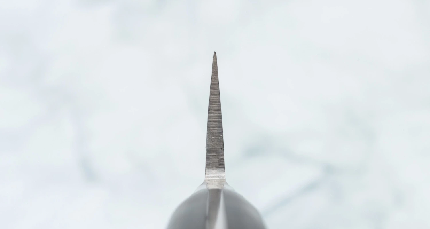 The geometry of this blade is similar to that of a gyuto, but with a heavily reinforced spine. This feature is designed to prevent damage to the knife when filleting larger fish or when it comes into contact with bones. Ideal for filleting tuna and larger fish weighing 10 kg / 22 lbs. or more! The strong spine and sharp blade are suitable for bone contact and tasks such as slicing pork chops through the cartilage. The knife is very sharp out-of-the-box and is ready to make some (precise) damage to the food you’re about to prepare. Read more about deba knives here!