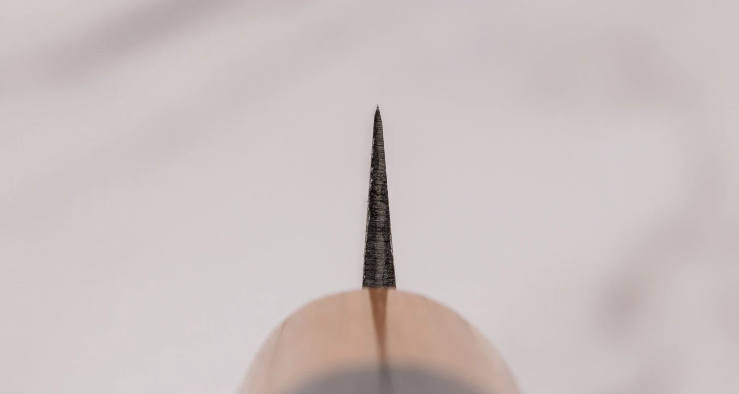 The core of this knife is Hitachi’s Super Blue Steel (Aogami Super), which is the very top quality of traditional Japanese steels. The Kuro-uchi (black) patina on the upper part of the knife gives it a unique and rustic appearance. This knife was heat-treated to around 63 HRC. It is a very hard steel, meaning that it will retain a super-fine sharpness for a long time. In addition, due to the high carbon content (1.4-1.5%), the knife is very easy to sharpen. Among the high carbon steels, Aogami Super is also the least sensitive to rust. It also contains 0.4% vanadium as an admixture for micronized metal grains, which gives the steel more toughness. Aogami Super is rated as the most advanced carbon steel. The outer layers are of softer, stainless steel, giving the knife extra rust protection.
