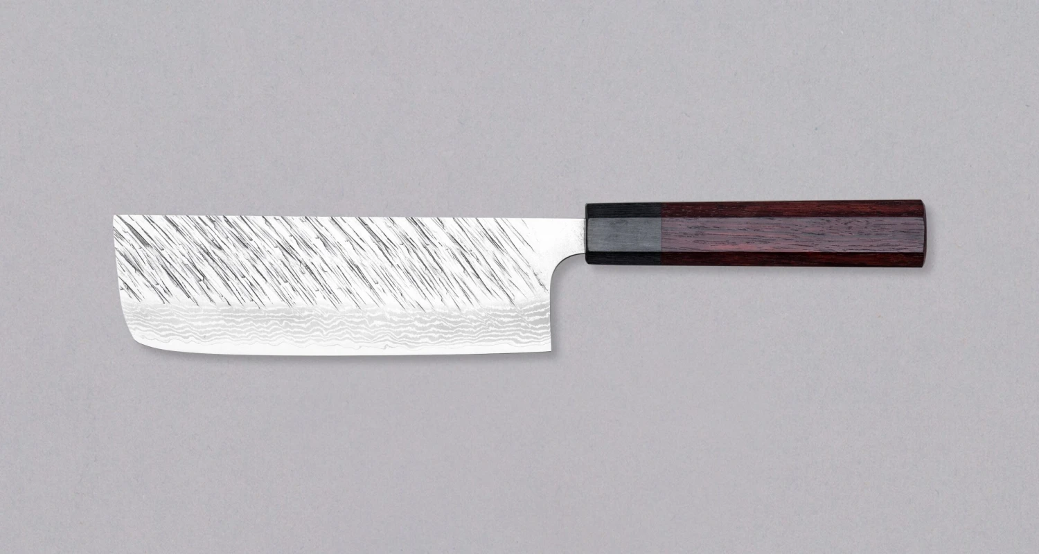 Yu Kurosaki is a young, talented master blacksmith, located in Takefu Knife Village, close to the city of Echizen. His knives are well known in Japan and around the world for their beautiful, special-looking design and great quality. Hammer’s dents on the blade are his unique signature, and like snowflakes, not a single dent is alike. Needless to say (but we will say it anyway), his knives not only look great, they are made of high-quality steels and come with a razor sharp, long-lasting edge.